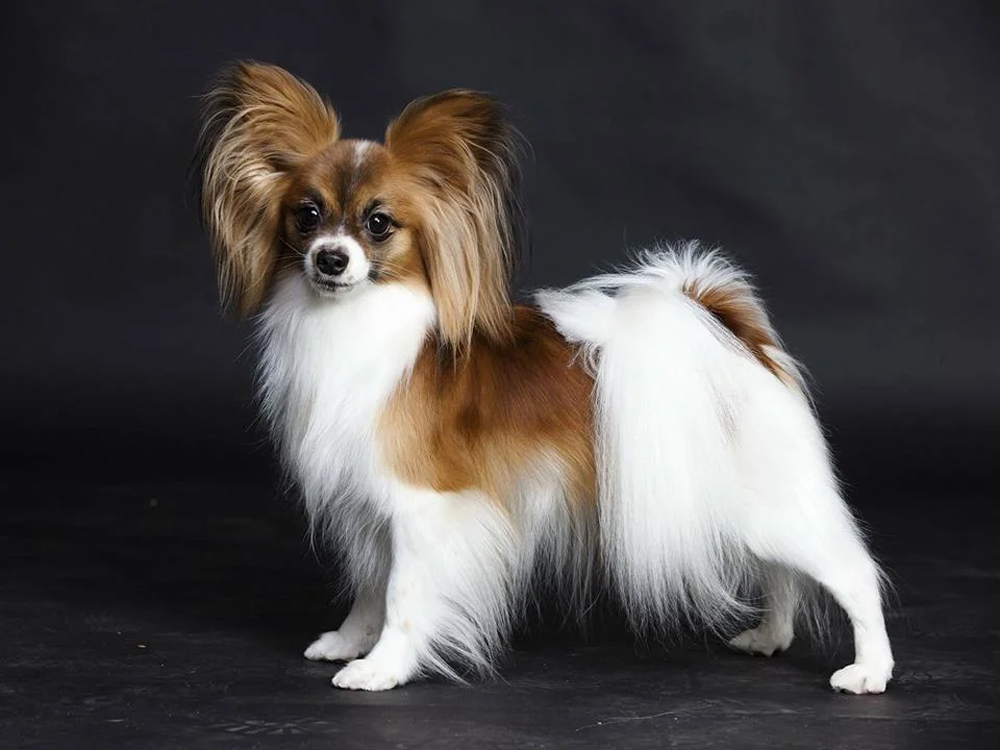 Это миниатюрные элегантные собачки ростом 20 – 27 см, весом 2 – 4 кг. Они впервые появились во Франции, где стали фаворитами при королевском дворе. Отличительный внешний признак папильона – крупные, прямые, чуть расставленные в стороны уши с длинными очёсами. По форме они напоминают крылья бабочки, отсюда название papillon, в переводе с французского – бабочка.