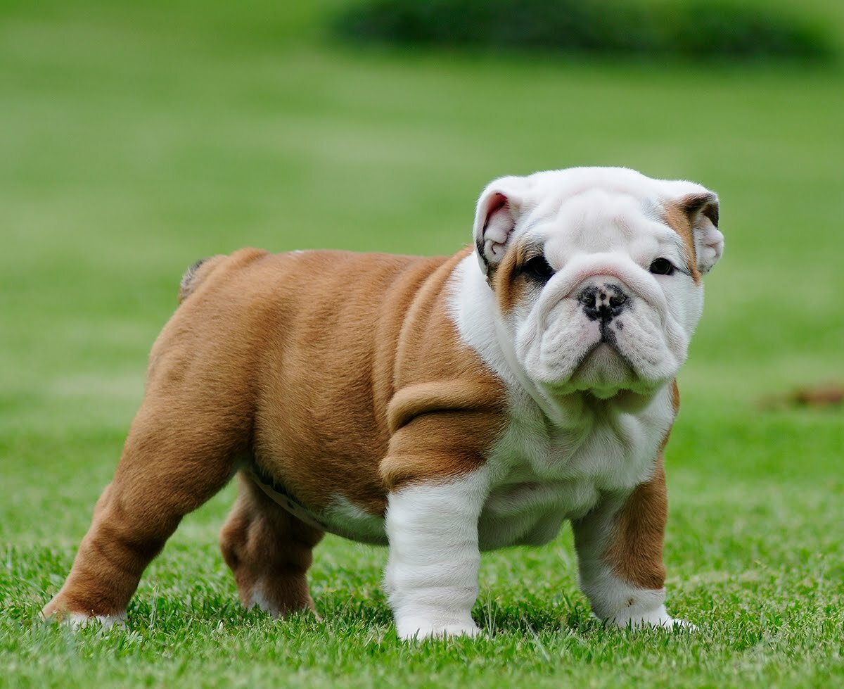 Английские бульдоги бывают тигровыми, коричневыми, рыжими с пятнами. Вес животного достигает 25 кг, а высотой кобели вырастают до 40 см (сучки поменьше).