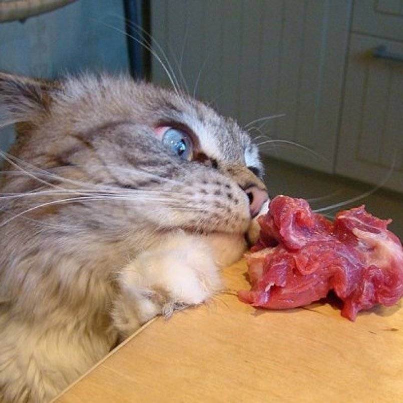 Разберемся подробнее в том, как правильно кормить кошку, если в ее рационе присутствует сырое мясо.