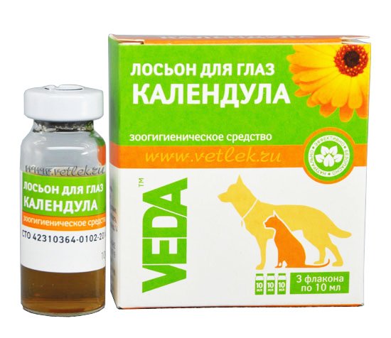 Календула для глаз коту используется в виде лосьона, чтобы обрабатывать, если у животных: текут слезы, отечность, конъюктивит или мелкие повреждения. Лосьон — это отвар цветочков календулы. Он обладает антисептическим, противовоспалительным, ранозаживляющим действием.