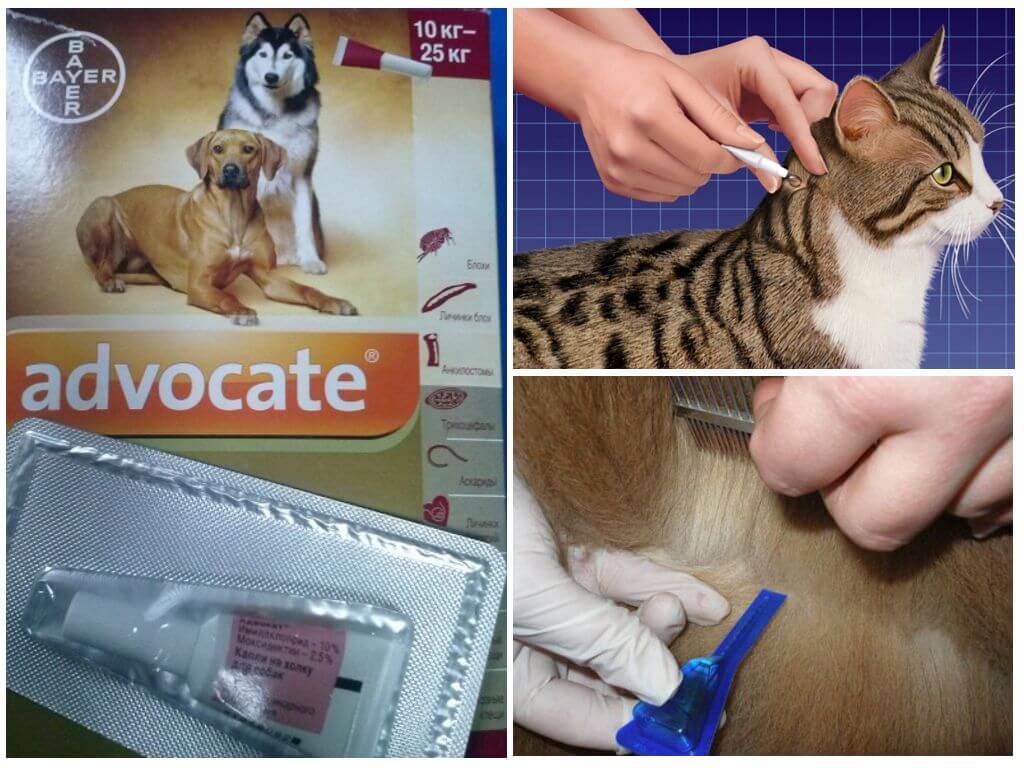 Капли «Advocate» выпускаются в форме бесцветного раствора для наружного использования, прием внутрь строго запрещен и может привести к гибели домашнего любимца. Чаще рекомендуется для обработки собак из-за лучшей переносимости. Выпускается в нескольких формах с учетом веса животного.