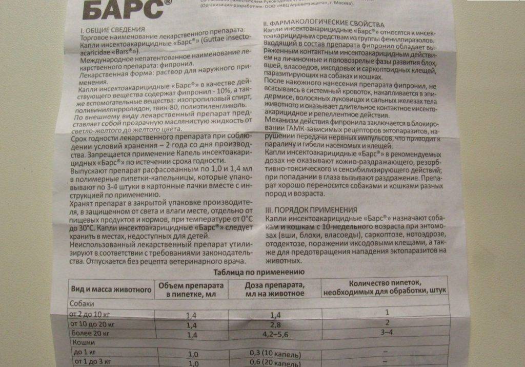 Барс форте для кошек: инструкция по применению