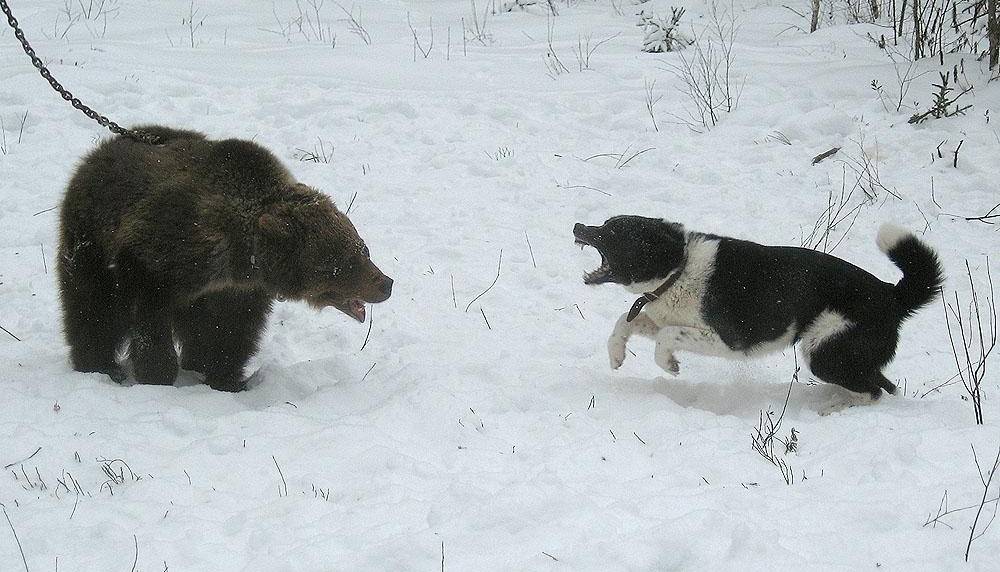 Дрессировка медвежатниц возможна только хозяином или под его неусыпным контролем. Пансионная дрессировка не эффективна.