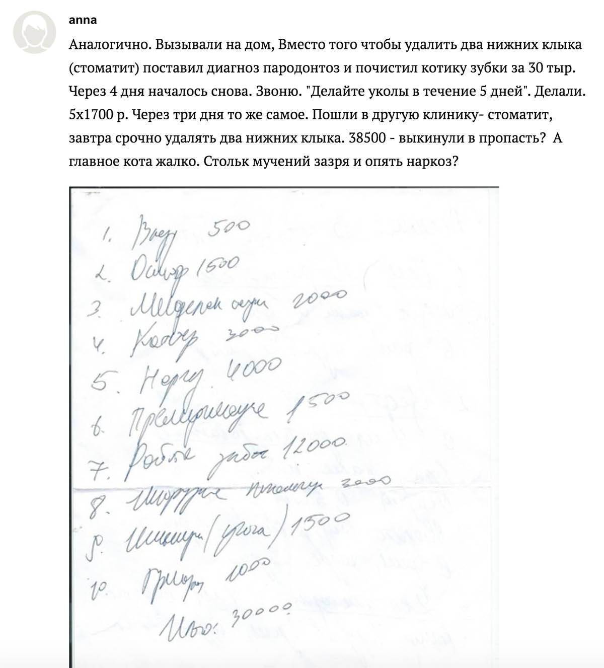 После этого выездная бригада к нему действительно приезжает, вот только неизвестно, где и чему эти врачи учились и что будут делать, если что-то с животным вдруг пойдет не так. Хорошо, если мошенники просто поставят животным вакцины и запросят тройную цену, как в случае Александра. Но иногда такие «ветеринары» умудряются убедить хозяев сделать полостную операцию на кухонном столе.