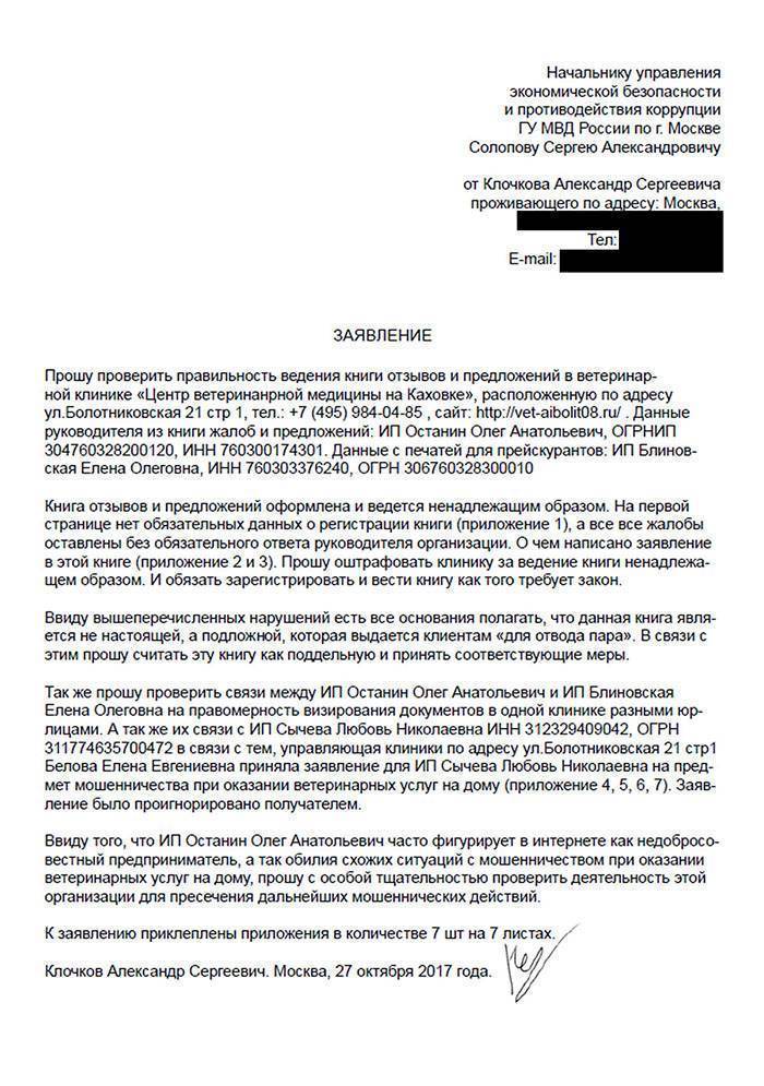 После этого 4,5 месяца ничего не происходило, а потом Александра пригласили в ОВД и сообщили, что клиника, физически прикрывающая мошенников, закрыта. Как и сами мошенники: их задавили исками и заявлениями пострадавшие владельцы животных.