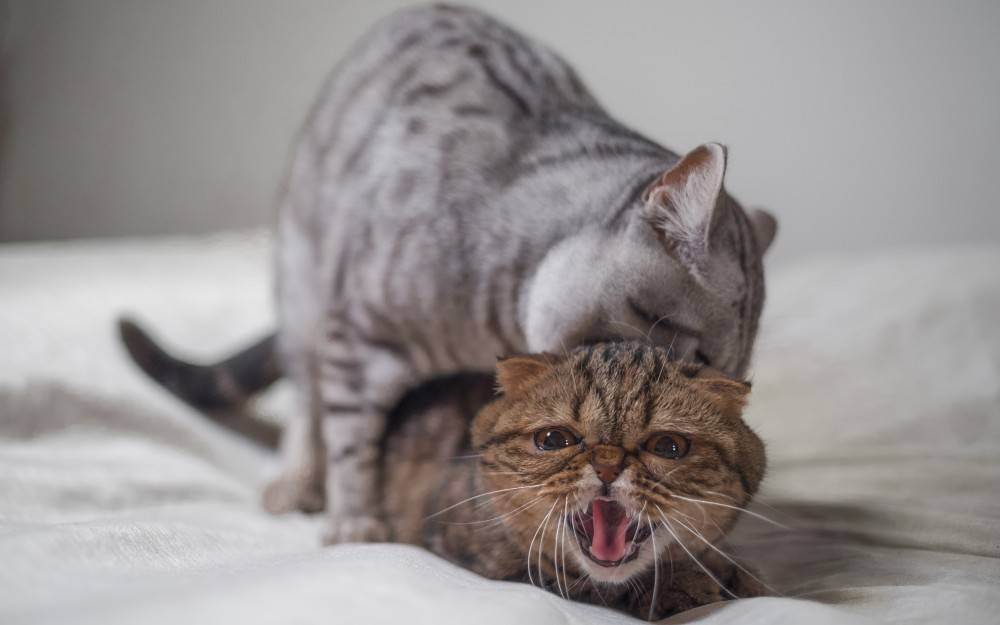 - Еще одной проблемой может стать разный размер животных, особенно, слишком массивная кошка. В таком случае самец не сможет покрыть ее, хватаясь за холку, он окажется на ее спине. Тут нужна помощь хозяина, который подержит кошку за холку.