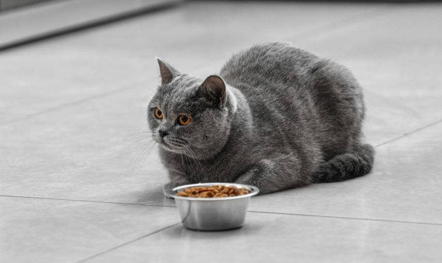 При наличии избыточного веса количество корма уменьшают на 15-25 граммов. Возрастным питомцам, ввиду замедления обменных процессов в организме, требуются пониженные нормы. Коту, весящему 2-4 кг, нужно около 30-40 г/сутки. Животному массой 5-6 кг необходимо 65 г, а имеющему 8-10 кг – 85 г/сутки. Оптимальный режим кормления – 2 раза в день.