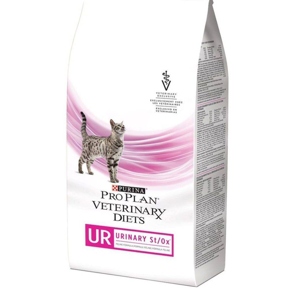 Purina Pro Plan (UR ST/OX). Способствует поддержанию кислого рН мочи, растворению струвитных камней и профилактике их повторного образования. Отличается сбалансированным содержанием фосфора и магния, повышенными дозировками витаминов группы В (поскольку они активно выводятся с мочой) и таурина. За счет умеренной калорийности и содержания жиров позволяет поддерживать нормальную массу тела.