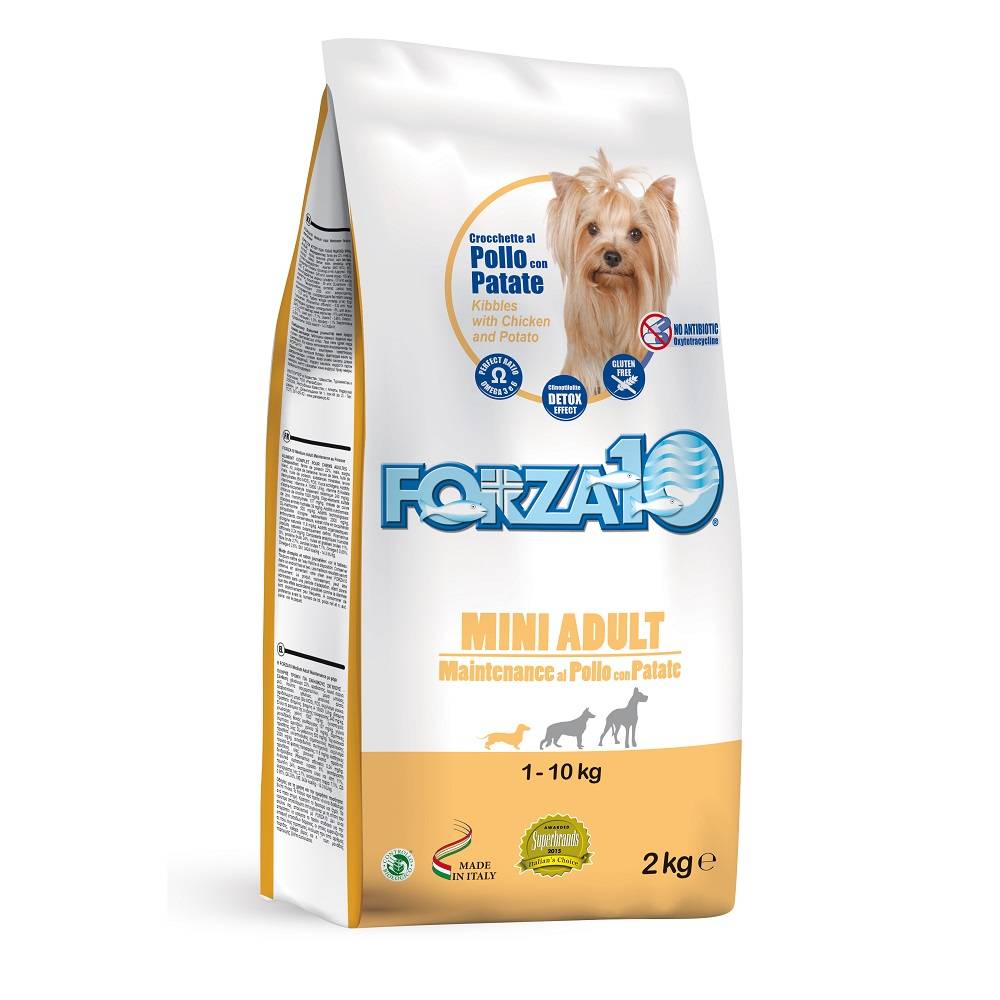 Forza 10 представляет собой корм премиум-класса. Его основные преимущества заключаются в относительно низкой цене и большом витаминно-минеральном комплексе, который способствует нормализации работы ЖКТ, улучшению состояния шерсти и общего состояния собаки. Продукция производится в Италии и не особо известна в России, поэтому найти ее на прилавках зоомагазинов часто проблематично.
