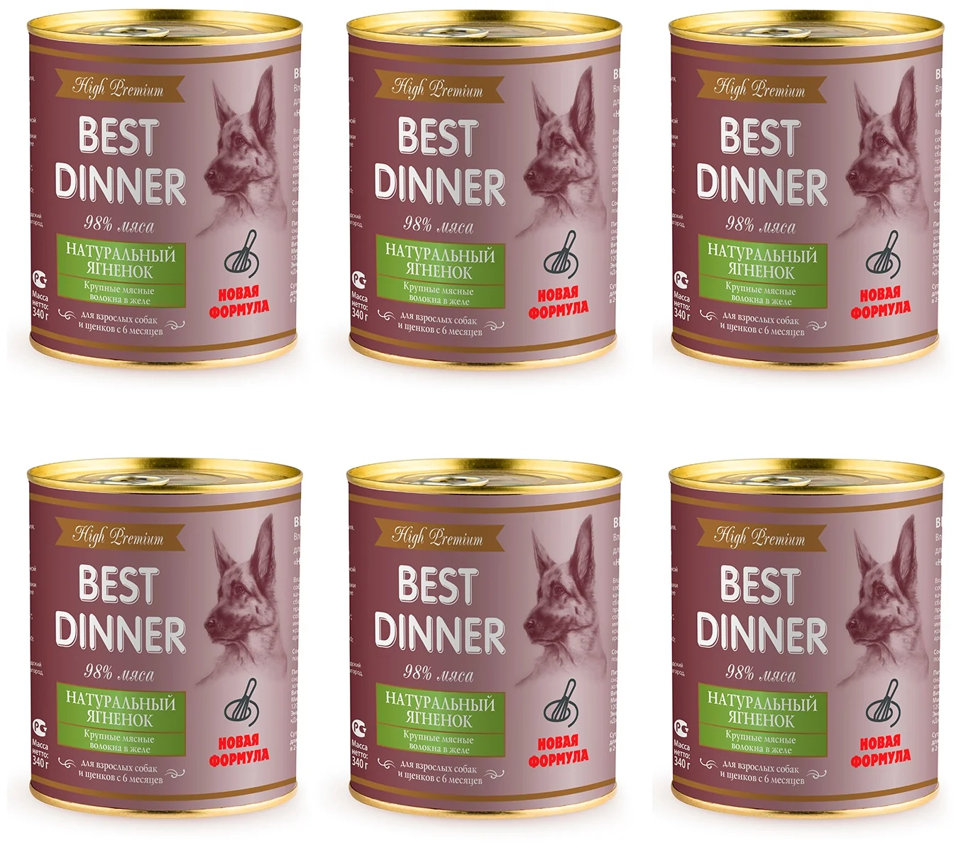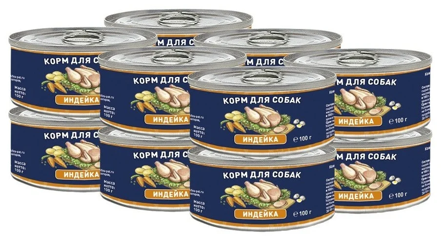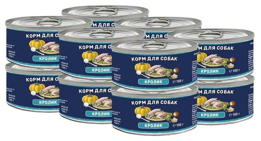 - Мясной рацион – предназначен для крупных активных собак. Банки по 850 г.