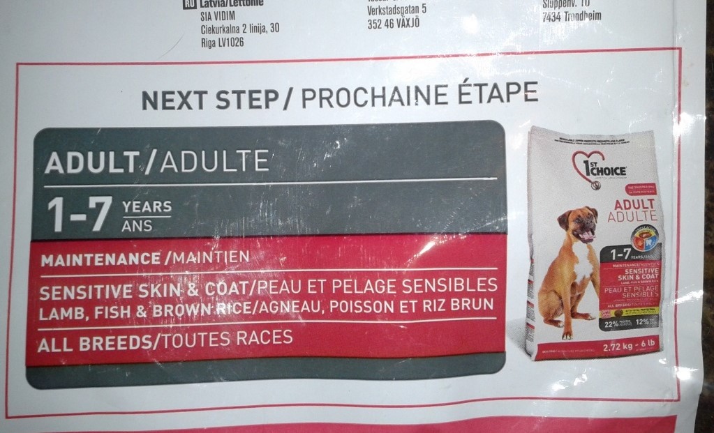 Давайте разберем состав корма 1st choice на примере повседневного рациона для средних собак всех пород Maintenance Medium & Large Breeds Adult. Корм подходит для животных в возрасте от 14 месяцев до 6 лет.