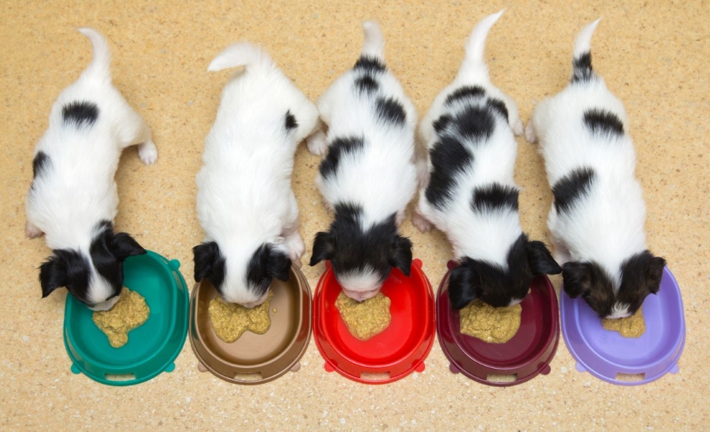 - если родились 4 щенка, порции увеличиваются в 2 раза;