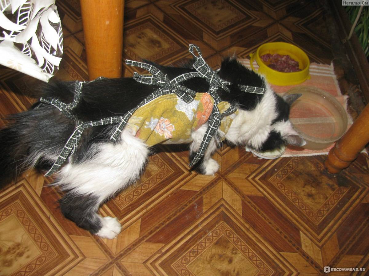 - Снимать раньше положенного времени послеоперационную попону или защитный воротник. Любопытная питомица может начать интересоваться швом, лизать его, тем самым дополнительно травмируя его и занося бактерии. А в первое время после стерилизации кошка может нализаться обрабатывающими растворами (Террамицин (не зеленка!), Чеми-спрей, Алиминиум-спрей). Помимо этого шов может загрязняться пылью, наполнителем для лотка.