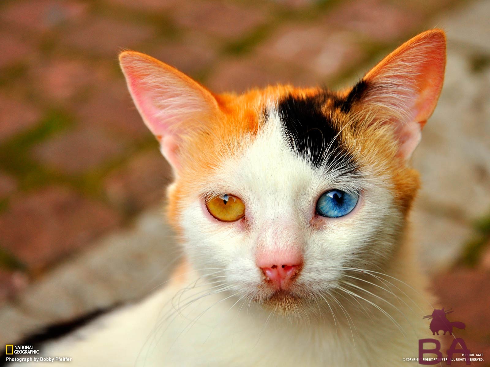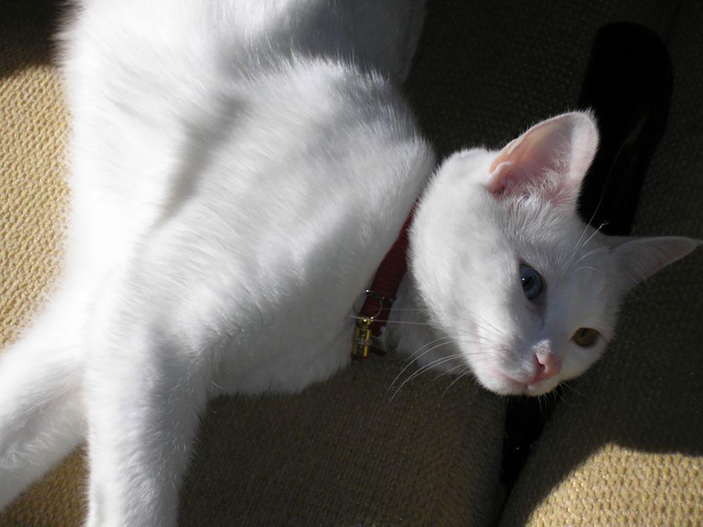 - короткошёрстная, полностью белая кошка с гетерохромией либо синими глазами (предположительно, изначально у породы были только синие глаза);