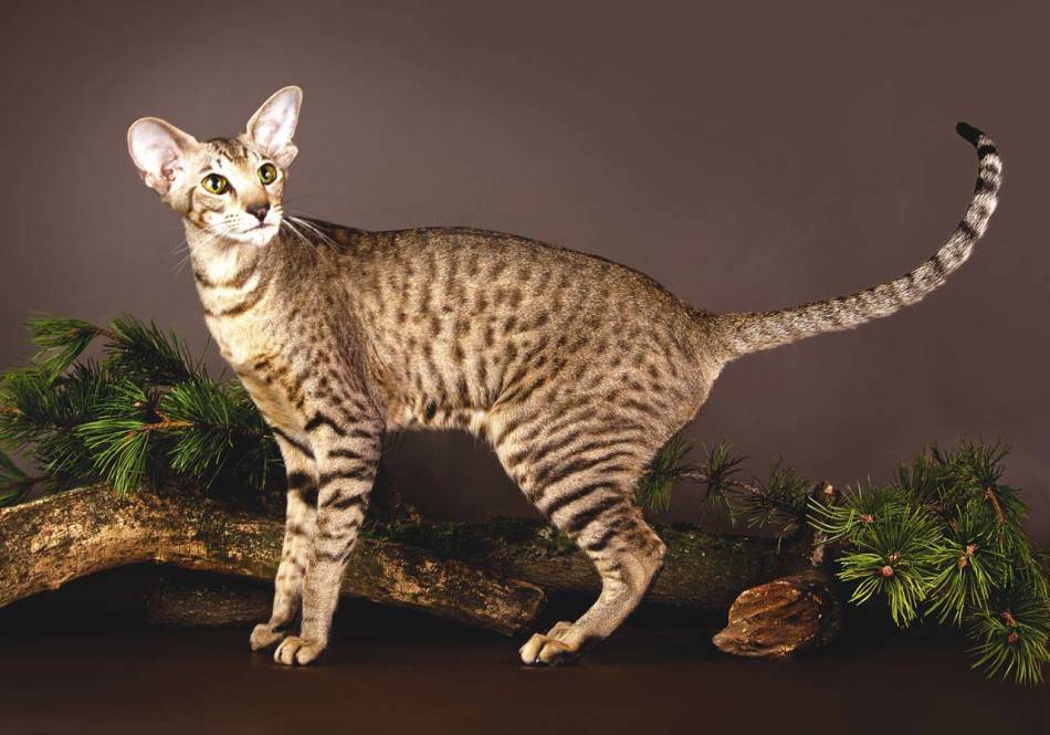 Ориентальная кошка. Утонченное телосложение представителей данной гипоаллергенной породы кошек легко узнаваемо. Вытянутое тело завершает удлиненный тонкий хвост. Посмотрев на вытянутые лапы, несложно заметить, что передние конечности длиннее задних. Заостренная форма головы четко повторяет симметричный треугольник. Окрас у ориентальных кошек очень разнообразен. А вот цвет глаз всегда зеленый. Исключение составляют питомцы белой расцветки. Представители этой породы всегда готовы к активному времяпровождению с хозяином. При этом имеют ярко выраженную особенность – обидчивость. Человеку придется учитывать этот момент и выстраивать свои особенные отношения с питомцем.