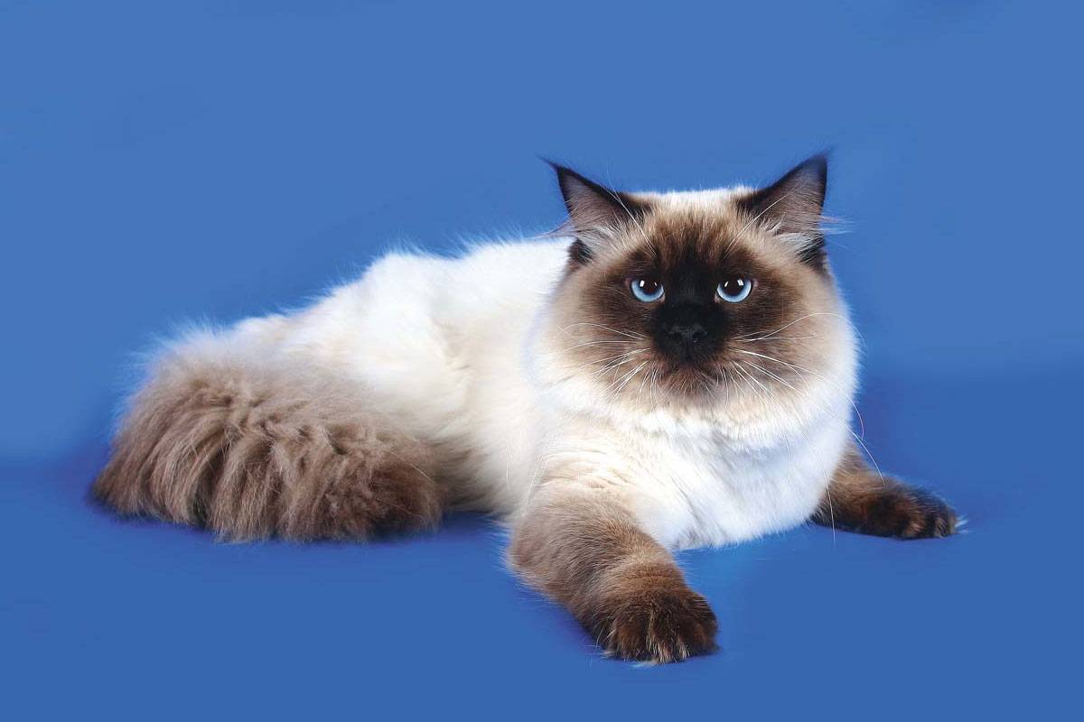 Изысканно выглядят блю-пойнты с серо-голубыми серебристыми отметинами и светлым телом. Ее представители отличаются крепким здоровьем и высокой продолжительностью жизни.