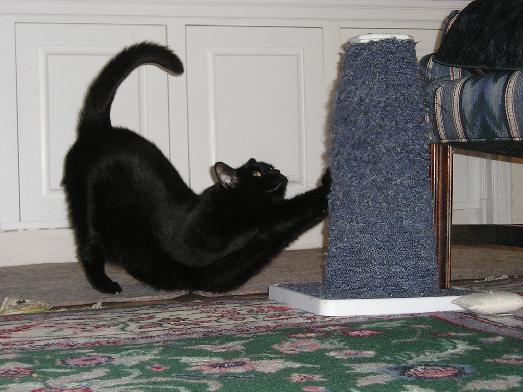 - высота и расположение предмета позволяет кошке потянуться с удобствами (попробуйте переставить вещь и проследите, продолжит ли животное царапать её);