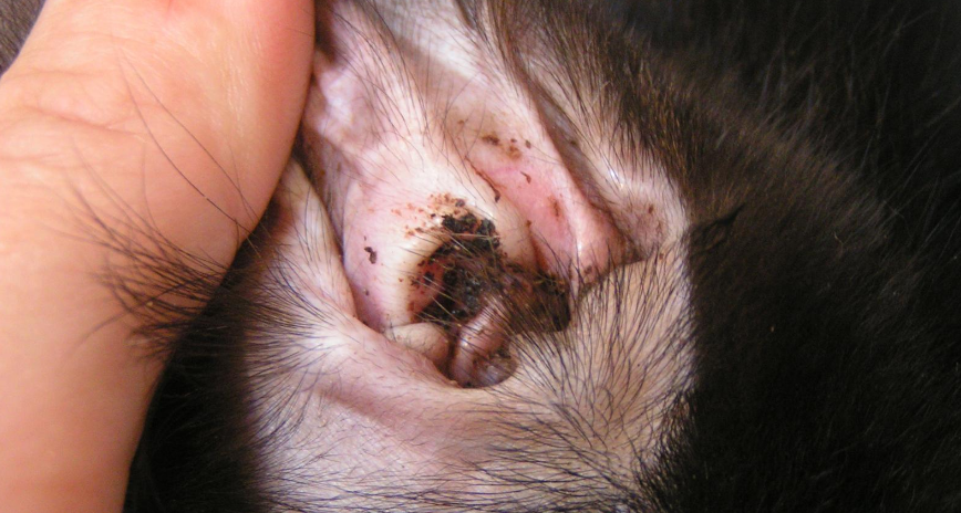 Второе название этого распространённого у кошек и собак заболевания – ушная чесотка. Животное, страдающее этим недугом, испытывает очень сильный дискомфорт, а также расчёсывает свои уши до крови.