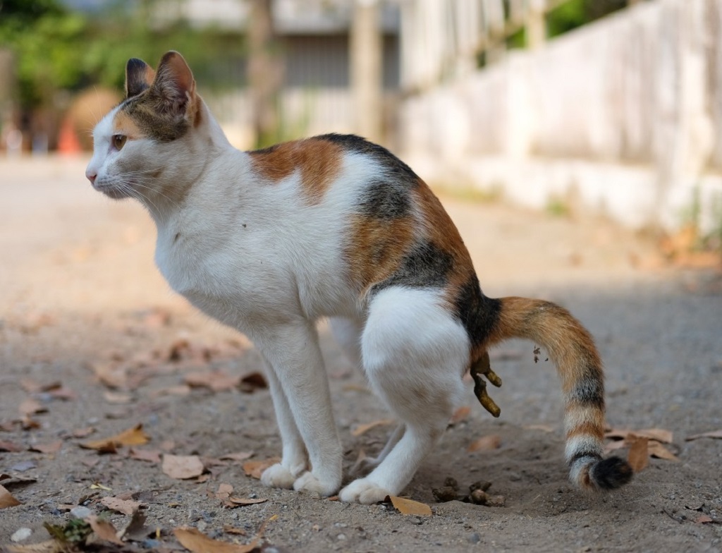 - Третий критерий – отсутствие примесей в кале или моче. Если кошка не может сходить «по-большому», но из анального отверстия выделяется кровь или слизь – это патология. То же касается примесей крови в моче.