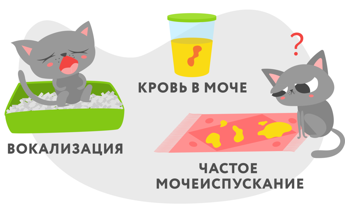 Во всех случаях наблюдаются определенные симптомы, которые зависят от вида заболевания. Например, при уроцистите питомец часто ходит в лоток – по 2-3 раза в час и даже более. Может долго сидеть в туалете, становится беспокойным или слишком вялым.