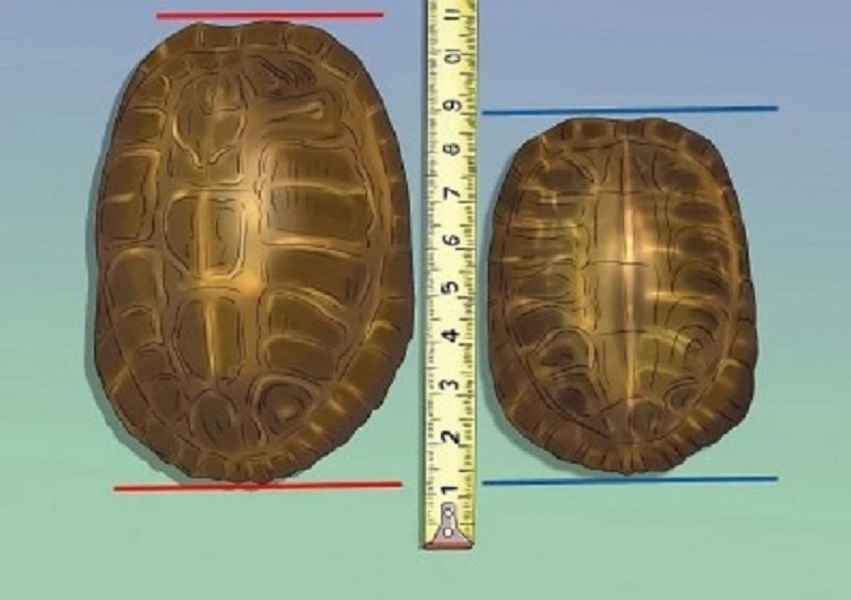 Изначально важно выяснить, является ли черепашка самцом или самочкой, что сделать не так-то и просто, особенно если речь идет о молодой особи. И только после этого можно измерить диаметр панциря рептилии и сравнить полученные данные с базовой информацией: