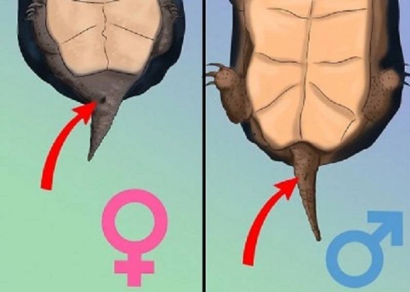 - В районе хвоста пластрон у мальчиков заострён, у девочек — закруглён.