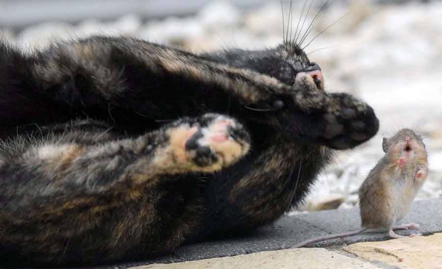 Кошка поймала крысу, играет с ней и отпускает на волю или же съедает. Бывают разные сценарии развития событий после того, как мимо хозяев пройдет кошка с мышкой в зубах. Почему кот играет с мышкой до конца никто так понять и не смог.