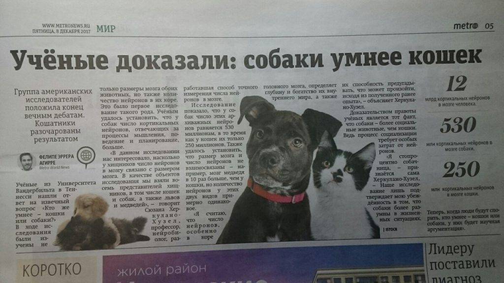 Итак, извечный вопрос по-прежнему остается открытым: какое животное умнее, кошка или собака?