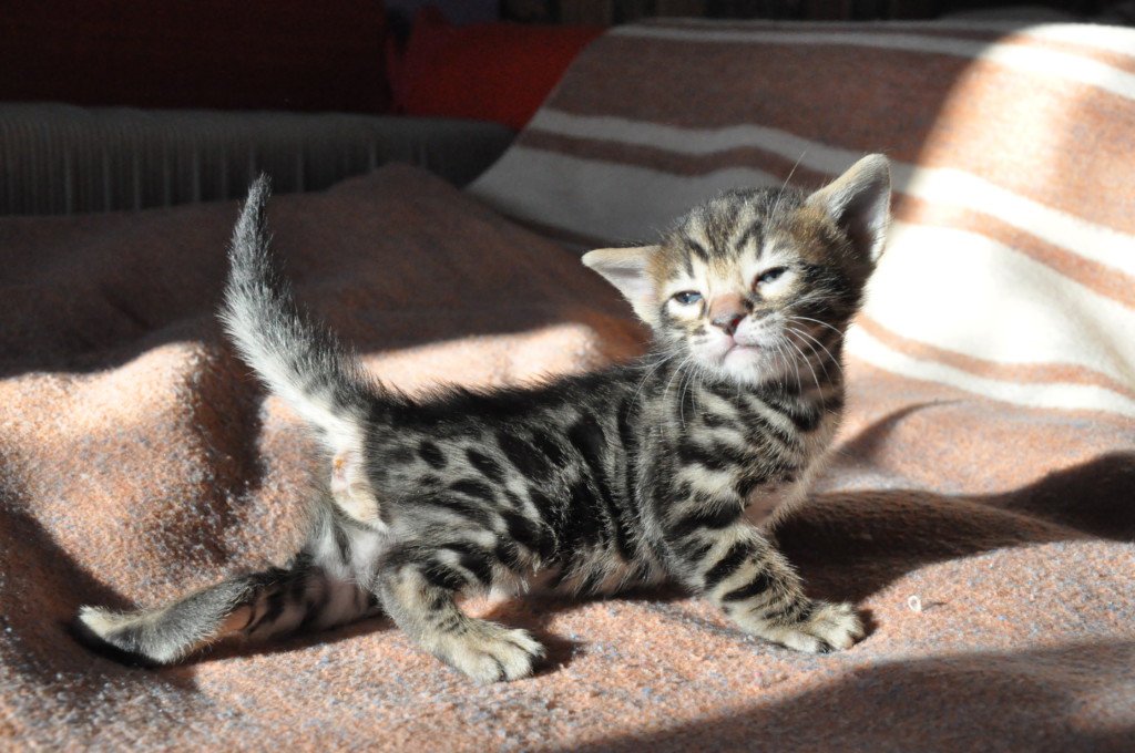 В юном возрасте у котят на некоторое время рисунок на шубке становится блеклым, это нормально. Так проявляется защитная функция, данная им дикой природой, чтобы окрас не выделялся резко, пока животное еще не может за себя постоять или быстро скрыться. Позже (около 3-4 месяцев) пятнышки снова станут более четкими.