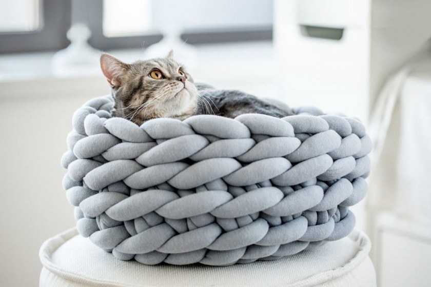 Вязаные вещи хорошо сохраняют запахи хозяина и если уж кошка прижилась в доме, значит эти запахи ей нравятся. Приложив немного усилий и добавив капельку креатива, создадим эксклюзивное, комфортное и безопасное местечко для питомца.