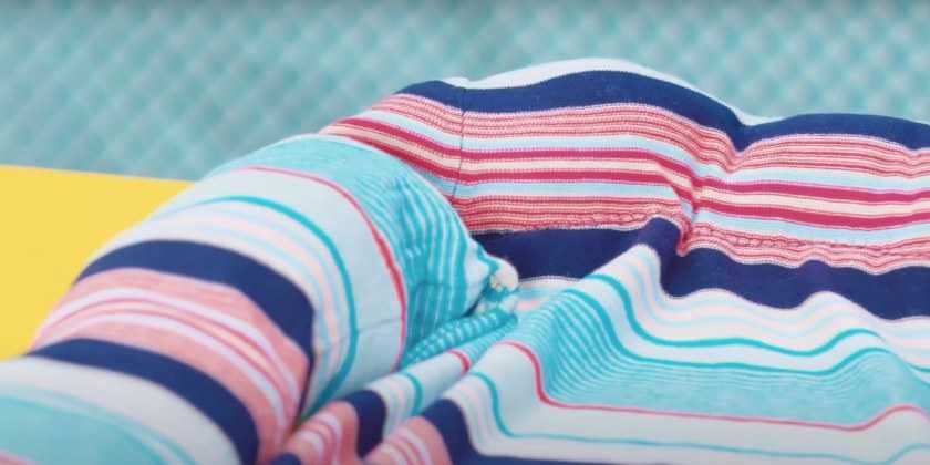 Основание свитера тоже заполняем любым наполнителем, но не так плотно как валик. Можно положить туда маленькую подушечку или старые тёплые вещи, чтобы образовалась мягкая перинка.