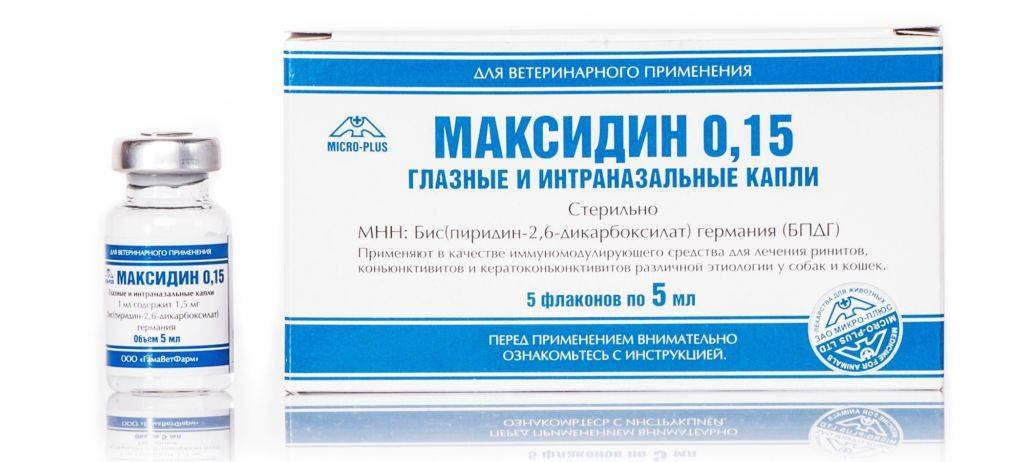 Максидин 0,15 иногда называют каплями для глаз, так как именно с этой целью его, как правило, и выписывают в ветеринарных клиниках (кстати, как кошкам, так и собакам). Иммуномодулирующий раствор 0,15% предназначен для закапывания в глаза/носовую полость.