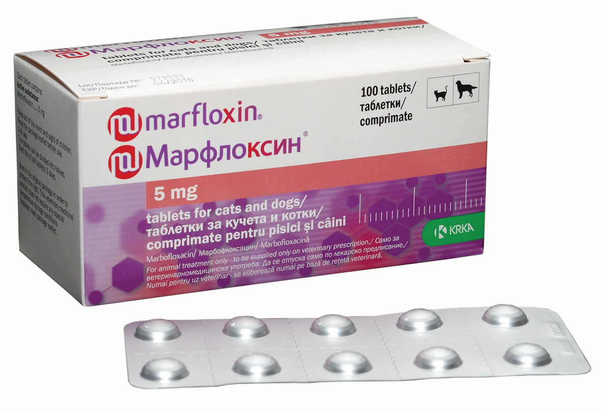 Таблетки марфлоксини при заболеваниях бактериальной и микоплазменной этиологии у кошек и собак При попадании в организм главное активное вещество: