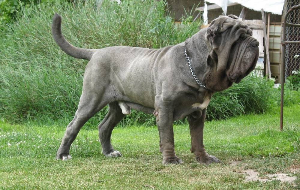 Собака неаполитанский мастиф выглядит крупной и массивной, а развитые мышцы говорят о внушительной физической силе и выносливости.