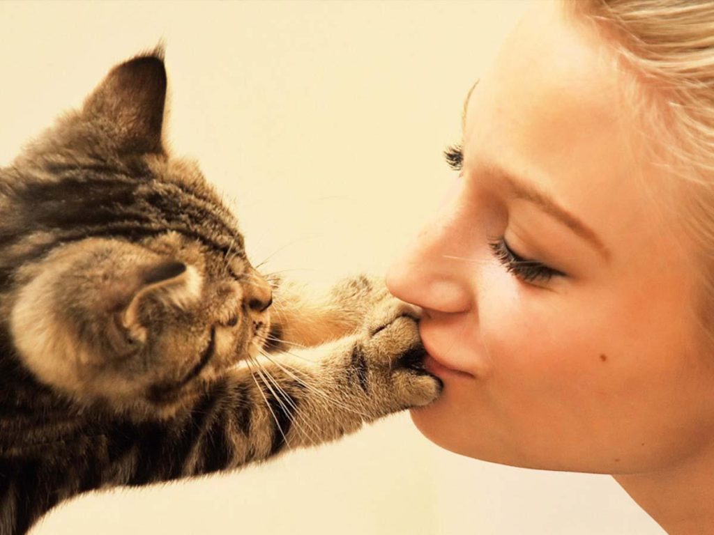 - Кошка протягивает лапку к лицу хозяина – просьба ласки и внимания.