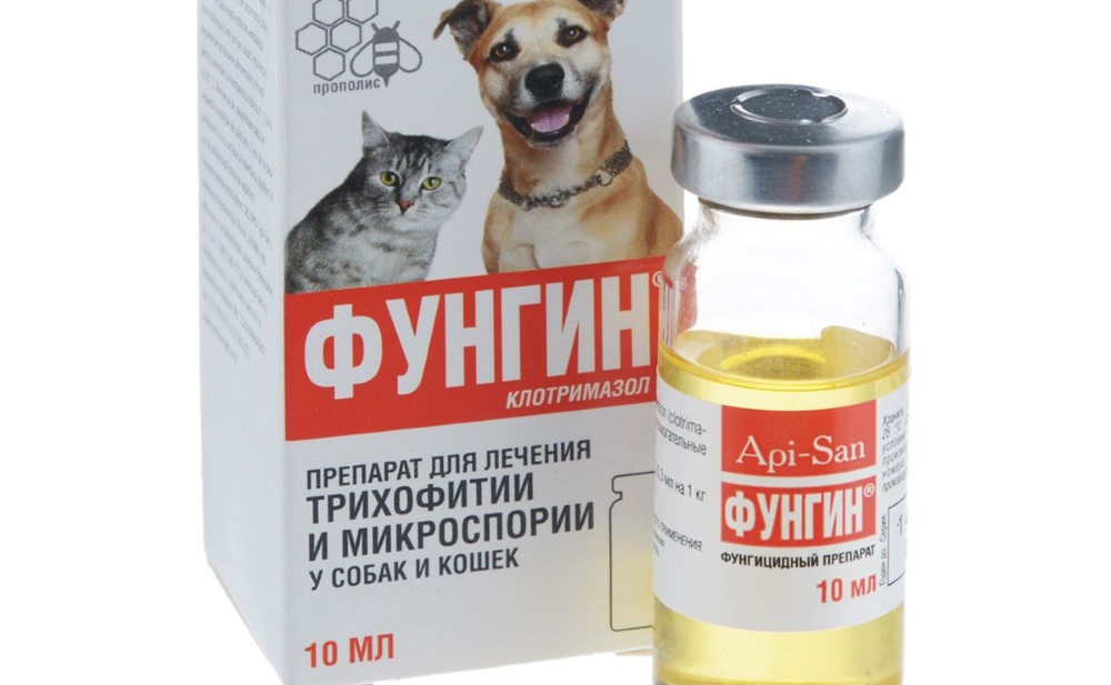 | Фунгин Форте | Раствор | Гидрохлорид тербинафина и лидокаина, тиабендазол, метронидазол, фосфат натрия дексаметазона | Пищевая добавка Е1519, диметилсульфоксид, ПЭГ 400, D-лимонен | Повышенная чувствительность к ингредиентам лекарства | Ослабленный организм, вынашивание и вскармливание детенышей, возраст до 4 недель |