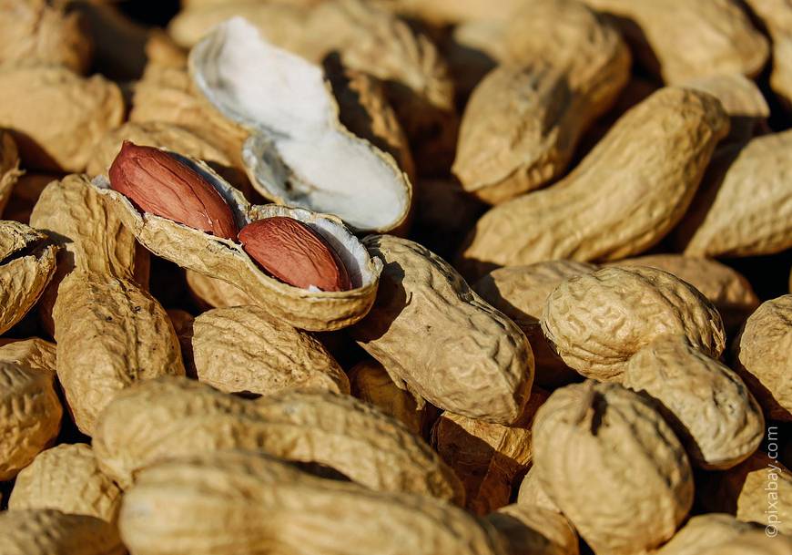 Арахис называют орехом, хотя правильнее отнести его к семейству бобовых. Арахис содержит белок, натрий, магний, фосфор, цинк и витамины, которые благоприятно влияют на общее состояние животного. Продукт этот безопасен, но при наличии аллергии у пса способен навредить питомцу.