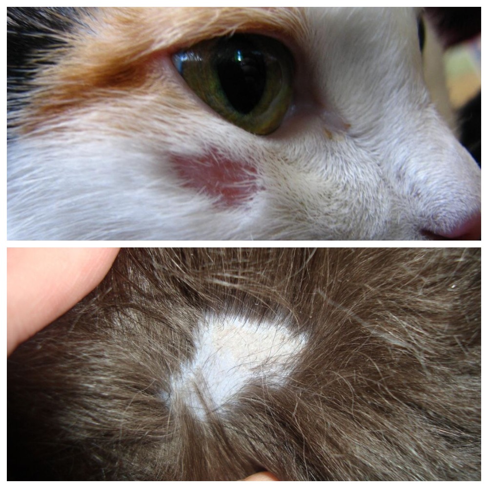 Обратите внимание, если у кошки не только кожные изменения, а подобные — очаги обломанных волосков шерсти. И обнаружив подобное, не откладывайте визит к врачу