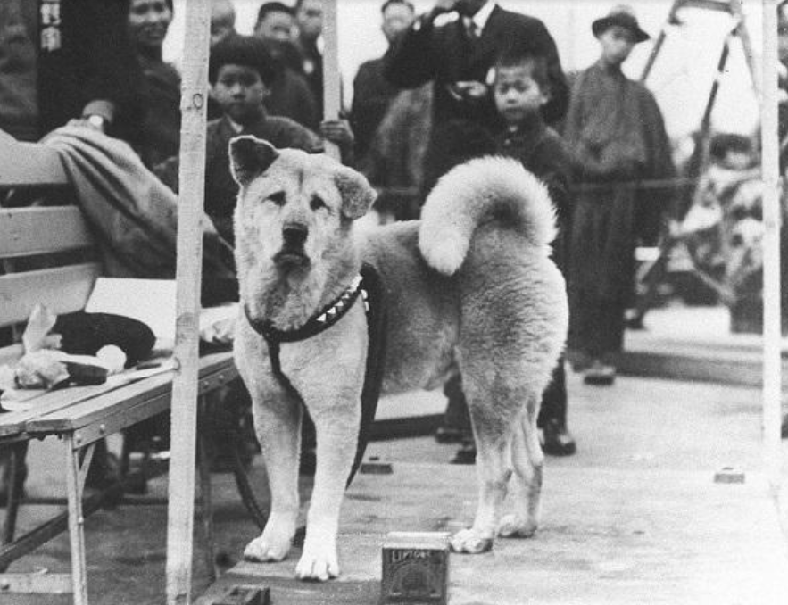 Хатико, золотисто-коричневая акита, родился 10 ноября 1923 года на ферме, расположенной в Ōдата, Префектура Акита, Япония. В 1924 г. Хидесабуро Уэно, профессор кафедры сельского хозяйства Токийский императорский университет взял Хатико в качестве домашнего питомца и привел его жить в Сибуя, Токио. Уэно каждый день ездил на работу, а Хатико выходил из дома, чтобы поприветствовать его в конце каждого дня на ближайшей станции Сибуя. Пара продолжала свой распорядок дня до 21 мая 1925 года, когда Уэно не вернулся. Профессор перенес кровоизлияние в мозг, когда он читал лекцию своему классу, и умер, так и не вернувшись на вокзал, где ждал Хатико.