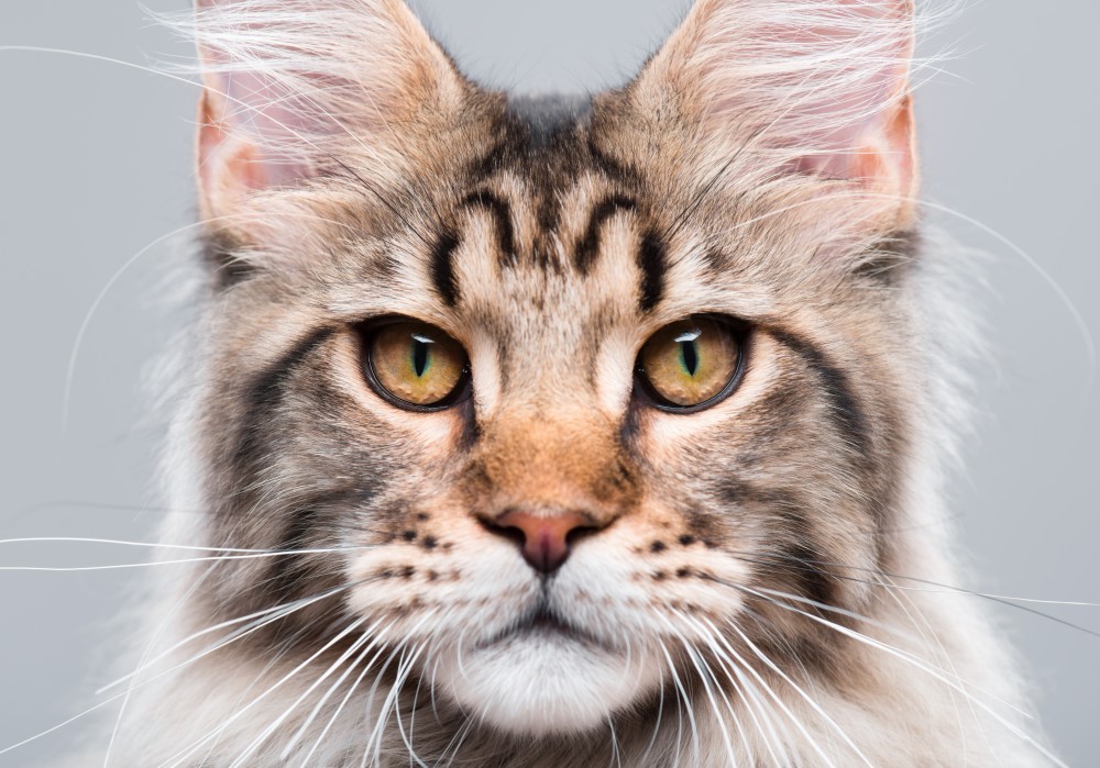 Трехцветный окрас шерсти делает образ мейн куна еще более необычным. Принято считать, что кошки, шерсть которых сочетает сразу несколько цветов, символизируют собой удачу и благополучие.