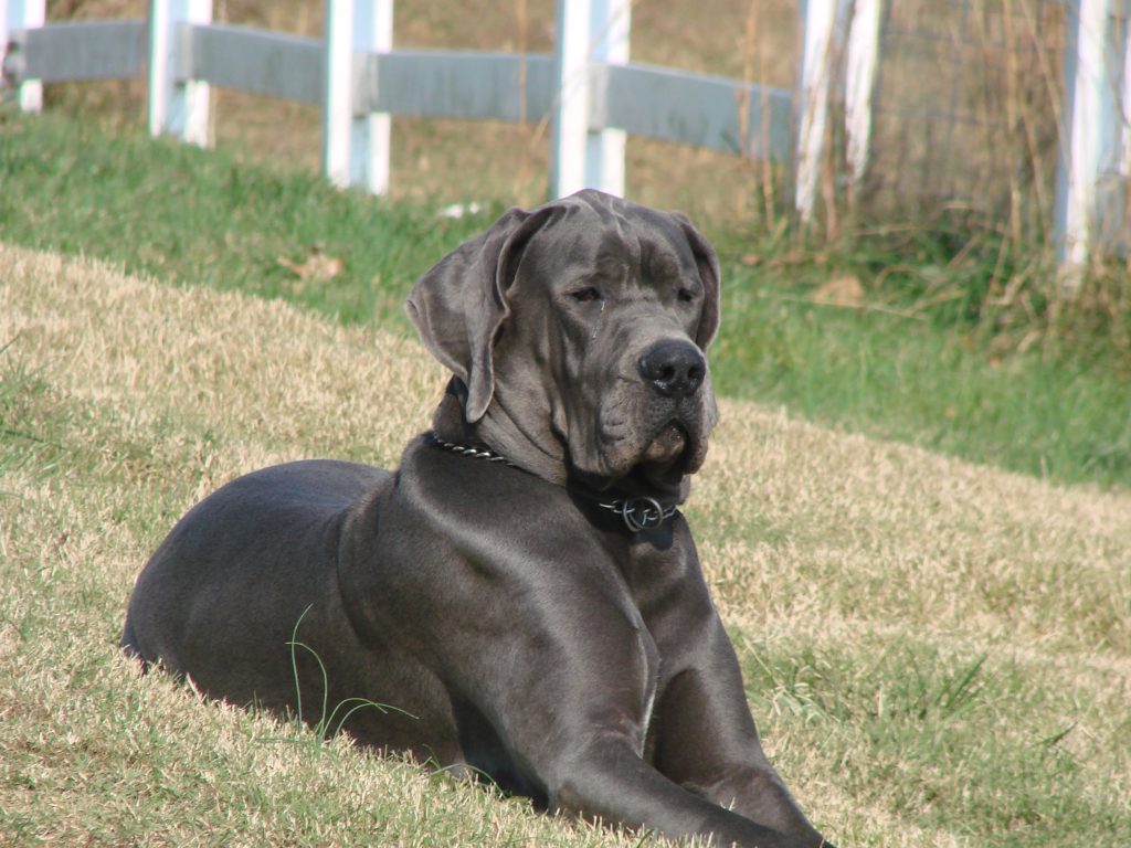 Мы уже рассказывали о немецком доге в статье про самые большие породы собак в мире, и он действительно гигант. Высота кобелей — минимум 80 сантиметров, а вес может достигать 90 килограмм