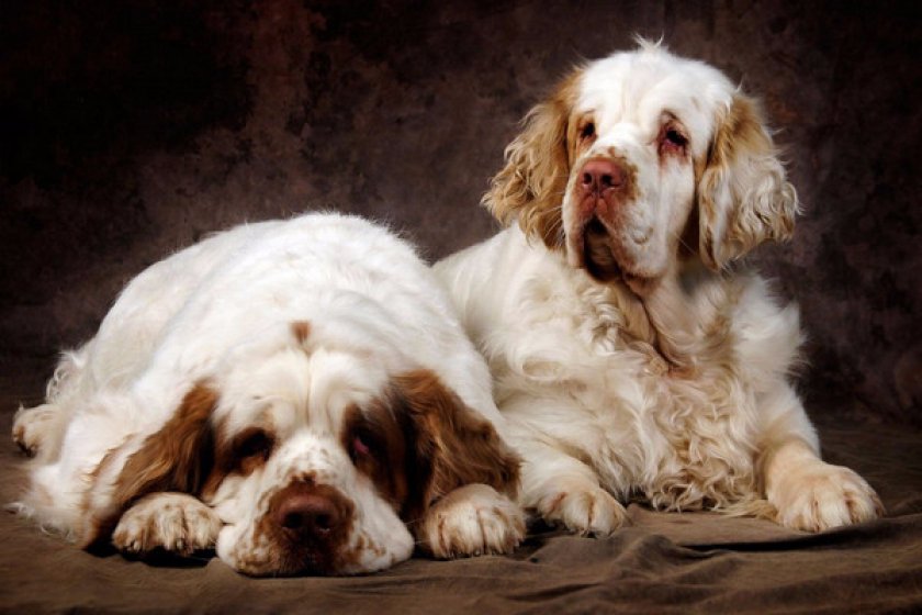 - Кламбер спаниель. Эта разновидность породы спаниелей внешне сильно отличается от своих собратьев и является самой крупной. Собак используют для охоты, но они имеют дружелюбный характер. Дома их содержать не рекомендуется. Животные сильно линяют, храпят во сне, нуждаются в регулярных физических нагрузках и отличаются обильным слюноотделением. Вес взрослого кобеля достигает 39 кг, окрас преимущественно белый, но допускается присутствие оранжевого или лимонного крапа.