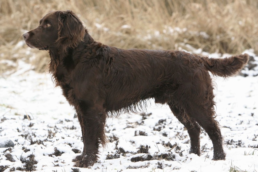 - Ирландский водяной спаниель – один из самых крупных представителей породы. Вес взрослого кобеля достигает 20 кг. Разновидность получена в 19 веке и до сих пор всех особей этого типа не делят на выставочных и рабочих. Все псы оцениваются по единому стандарту. Предположительно, к селекционным работам привлекались «афганы», черты которых угадываются во внешности ирландского водяного спаниеля.