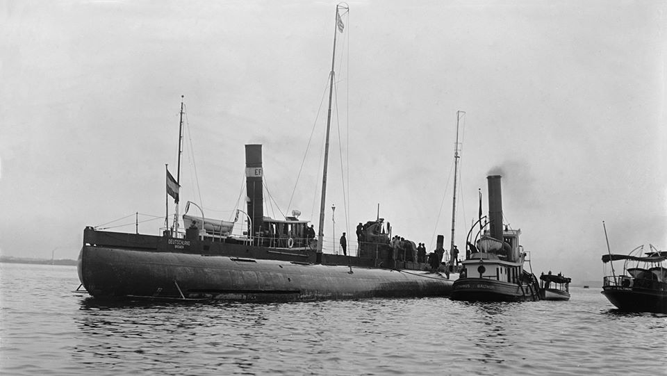 Коммерческая подводная лодка «Дойчланд» («Германия») с грузом лекарственных препаратов прибыла в Балтимор, штат Мэриленд. 10 июля 1916 года.