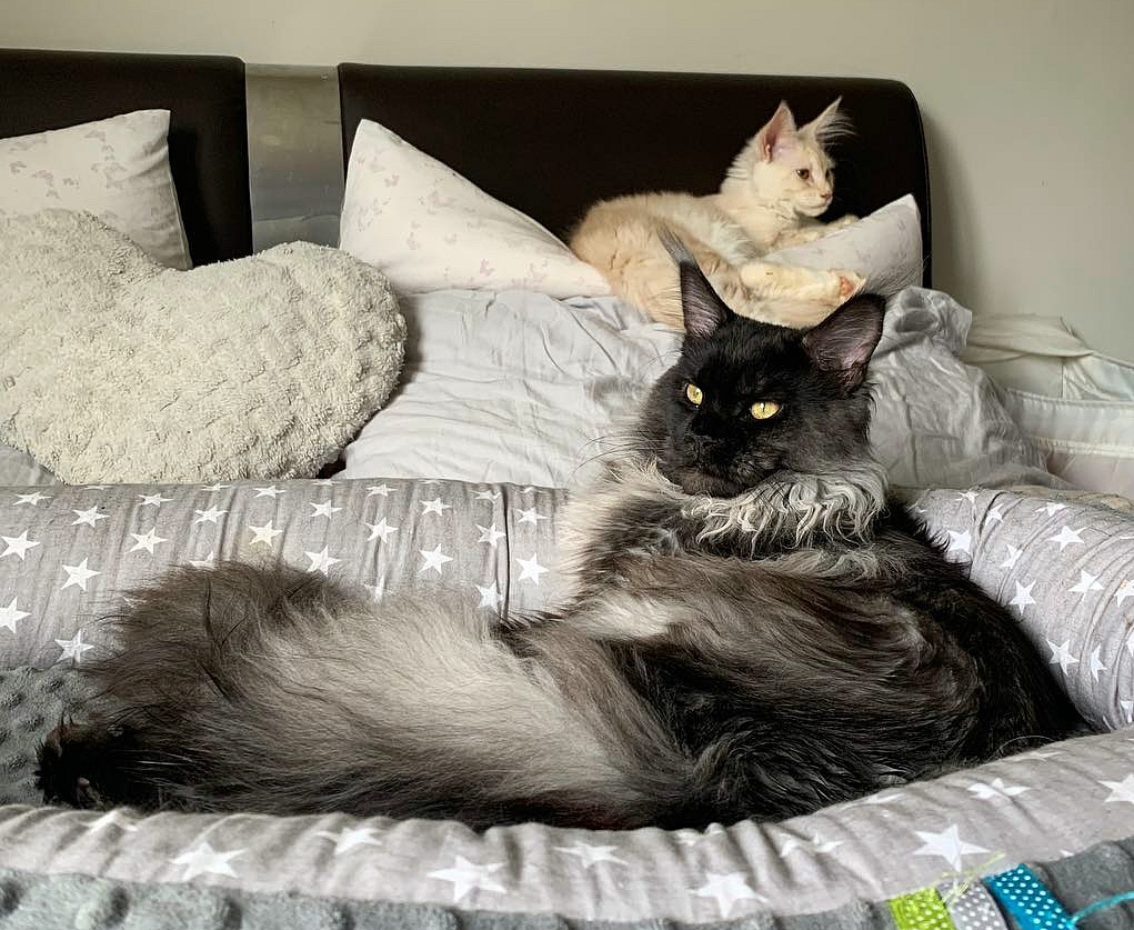 Небольшой участок личной территории, как повадка, позволит коту чувствовать себя уютно и комфортно. У гигантской домашней кошки мейн-кун такое же большое и любящее сердце. Те, кто поселился в нем, будут сполна одарены кошачьей нежностью и лаской. Еще одна особенность: доверие к новым людям приходит не сразу, его нужно заслужить поступками.