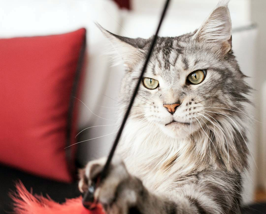Мейн-куны никогда не пускают когти, поэтому это идеальный вариант домашнего питомца для семьи с детьми. Кот будет снисходительно терпеть все то, что проделывает с ним ребенок в процессе игры, даже если при этом ему не очень приятно, в крайнем случае, он просто удалиться.