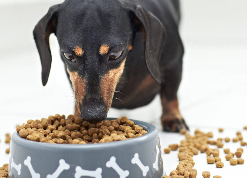 Собака корм нравится