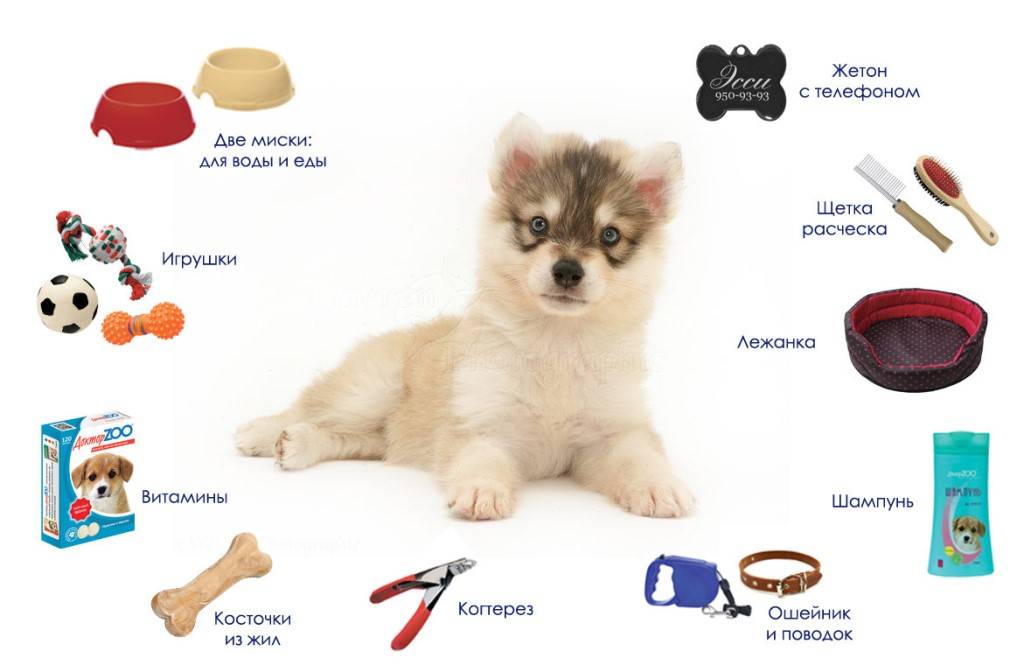 Узелки и мячи из канатов, оленьи рога, палки, шишки, пластиковые игрушки и бутылки, узелки из полотенец и картонные коробки, сухие лакомства (сыромятные косточки, сушеное копыто, носы, уши).
