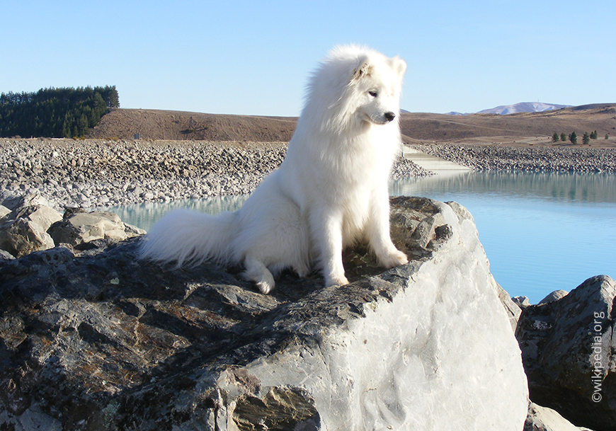Его относят к примитивным породам собак. Эта порода собак, которая постоянно на позитиве, так называемая «улыбка» собаки создается благодаря поднятым уголкам пасти и форме глаз. Их часто относят к арктическим шпицеобразным собакам. Основные черты, которые их отличают: сила, выносливость, грациозность, уверенность в себе. Не следует заводить собаку породой самоед для того, чтобы она сторожила дом, ведь эта порода отличается чрезмерно добрым отношением к людям. Это очень активные собаки, которые легко поддаются дрессировке. Шерсть густая, но не очень длинная, поэтому особого ухода не требует.