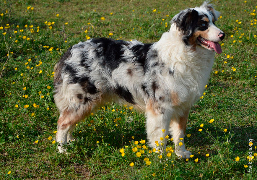 Ее другое название – это австралийская овчарка. Родилась эта порода в США. Эти собаки легко поддаются дрессировке, имеют очень спокойный, добрый характер. Аусси отличаются красотой своих глаз, в которых можно увидеть всю душу собаки. это очень верные друзья, которые окажут помощь в любой экстренной ситуации. Именно по этой причине их часто используют, как собак-поводырей. Они очень дружелюбны и легко поладят с другими питомцами, они нуждаются в ежедневных нагрузках (начиная от 60 минут в день до 3 часов). Эти собаки могут с легкостью приглядывать за детьми. Их вес составляет 25-30 килограмм у кобелей и 18-26 килограмм у сук, а рост в среднем до 58 сантиметров. Продолжительность жизни не более 15 лет при грамотном уходе и регулярных нагрузках.